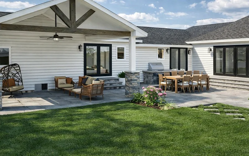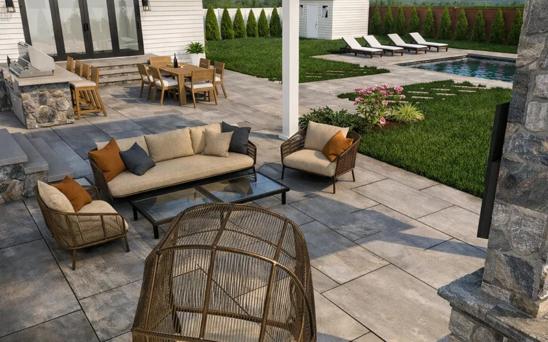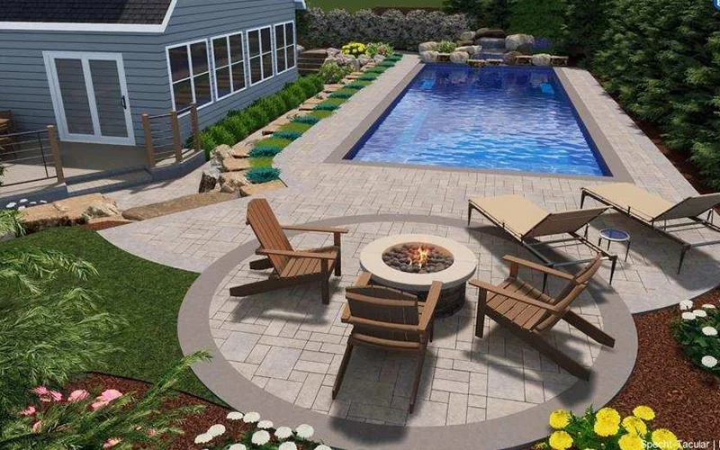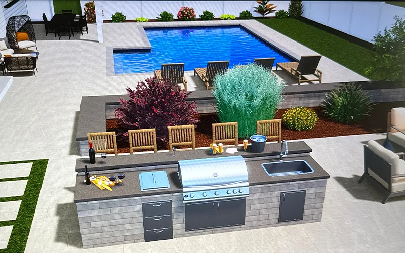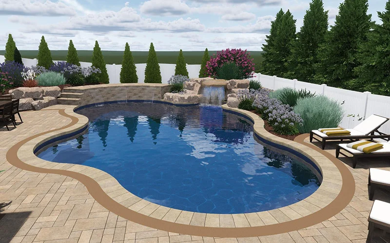 By laying out actual design templates in the backyard and using revolutionary custom design software, the Specht-Tacular design team is able to create a precise 3D drawing that allows the homeowner to see exactly how the entire backyard will look. Pool, patio, even landscaping, are clearly pictured, all using the homeowners exact backyard dimensions. No surprises!
