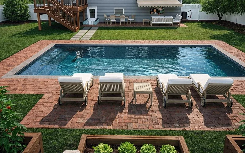 Once satisfied with the backyard layout, it’s time to select options ranging from waterfalls and heaters to brick color and style. Specht-Tacular Pools even takes care of getting the necessary permits.